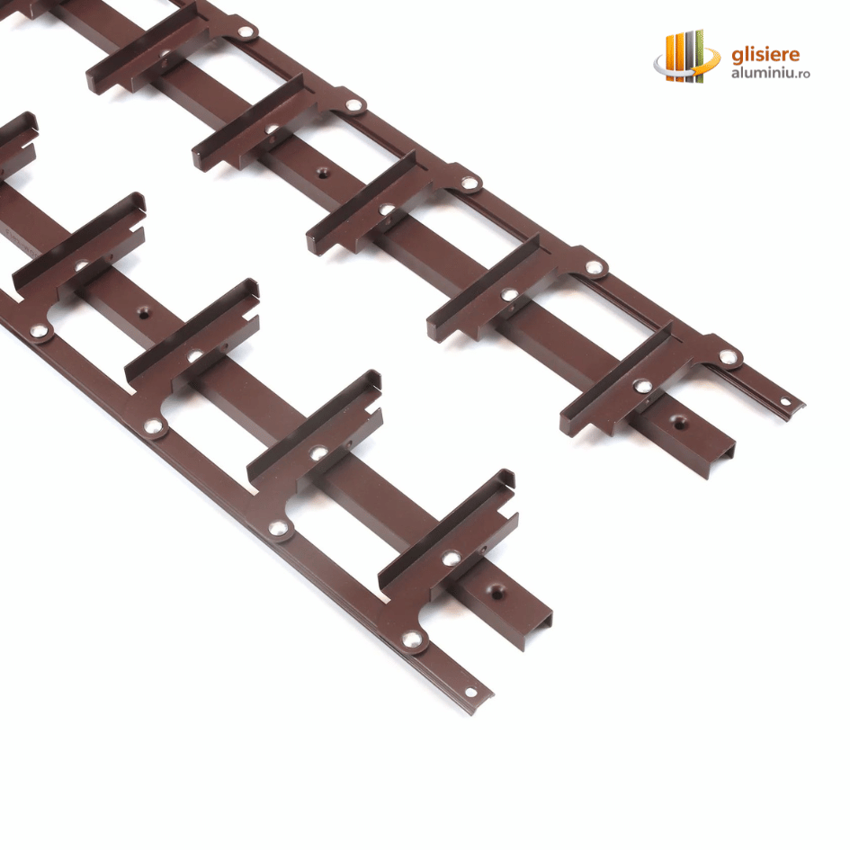 sistem din aluminiu vopsit in maro sau antracit, inchidere perfecta la drept, posibilitatea de a fi scurtate sau montate in serie, cu interconectare pentru manevrare totala.